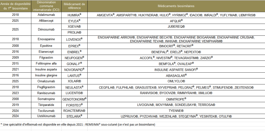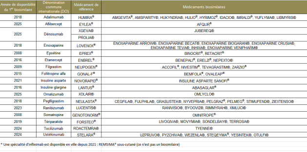 Les biosimilaires actuellement disponibles en Europe et en France